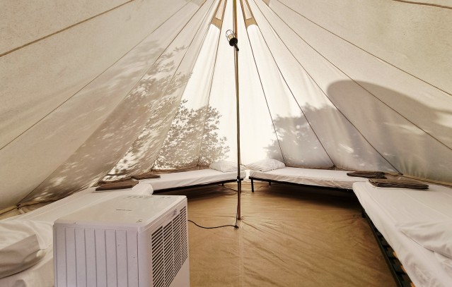 Our Cool glamping tents are cool as they come with the air-conditioning.