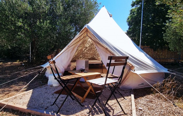 Cool tents offer a cosy yet spacious living & sleeping space to provide accommodation for up to 4 people. The center of the tents is 3 meters high and have 5 m diameter.
